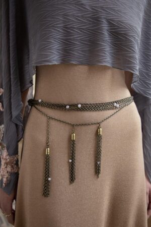Nidodileda – Valento Chain Belt Layered Metallic Tassel – Antique Bronze