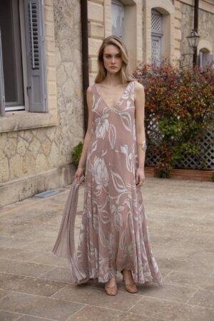 Nidodileda – Morphe Tunic Dress Foil Floral Printed – Silvery Gold