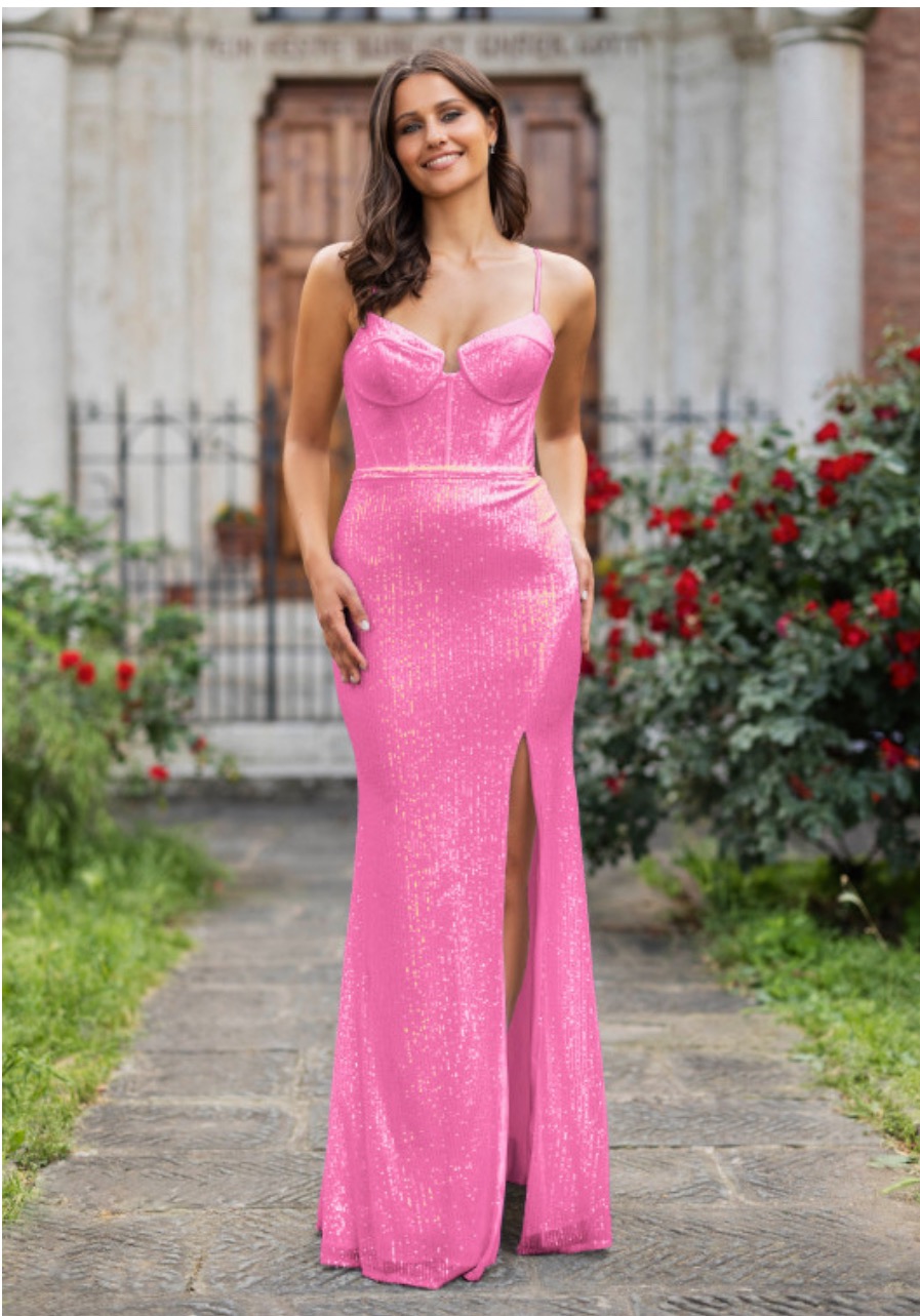 Christian Koehlert – Sequined Evening Dress With Back Lacing In Shocking Pink