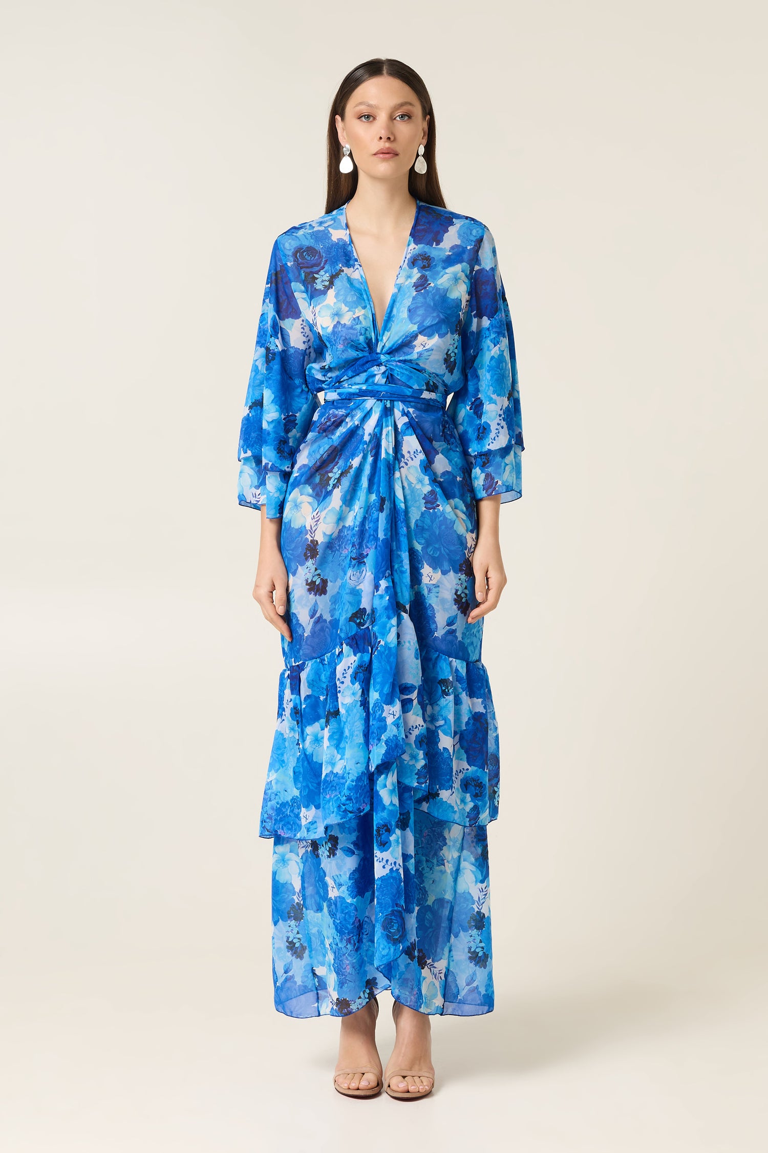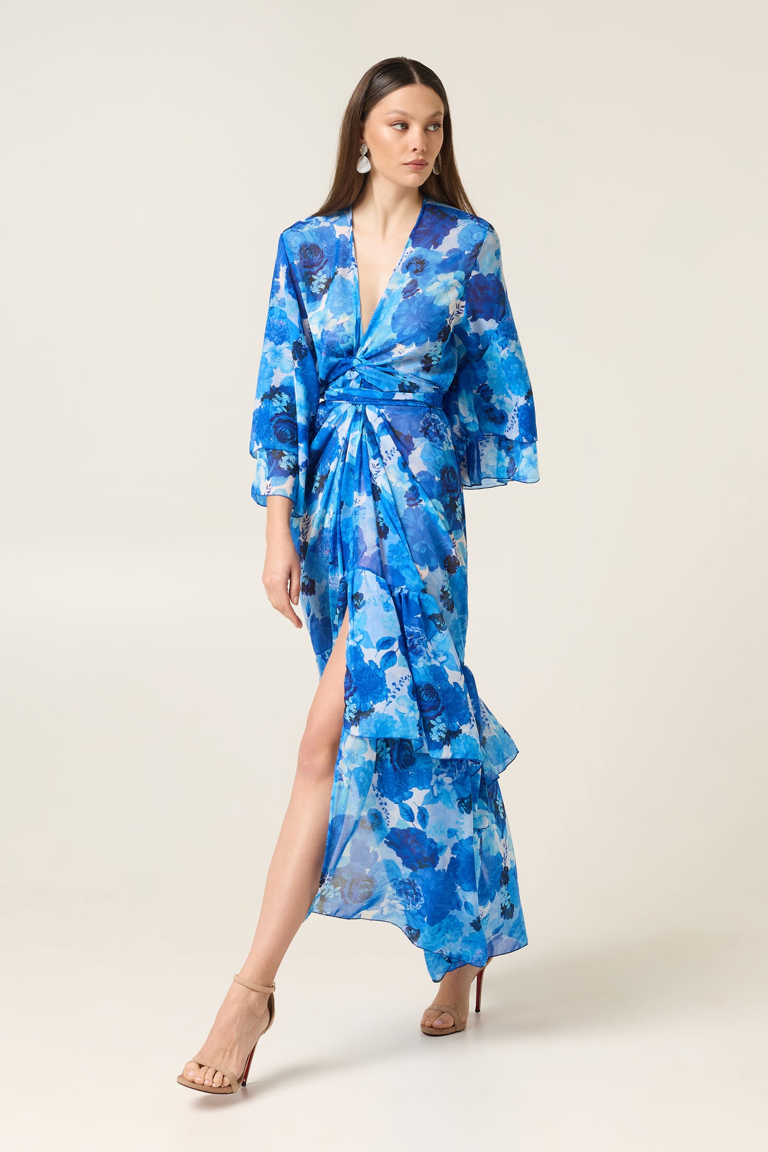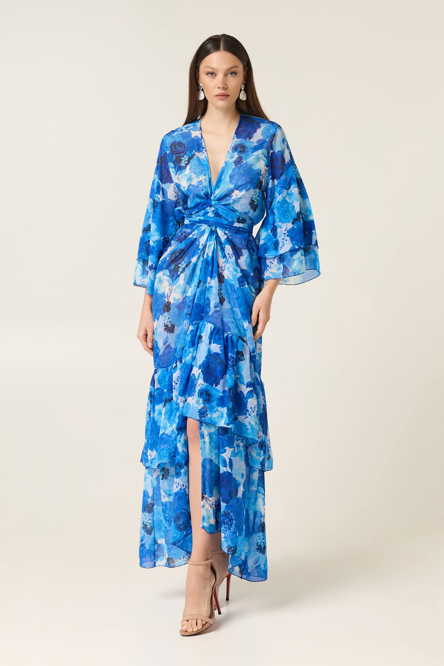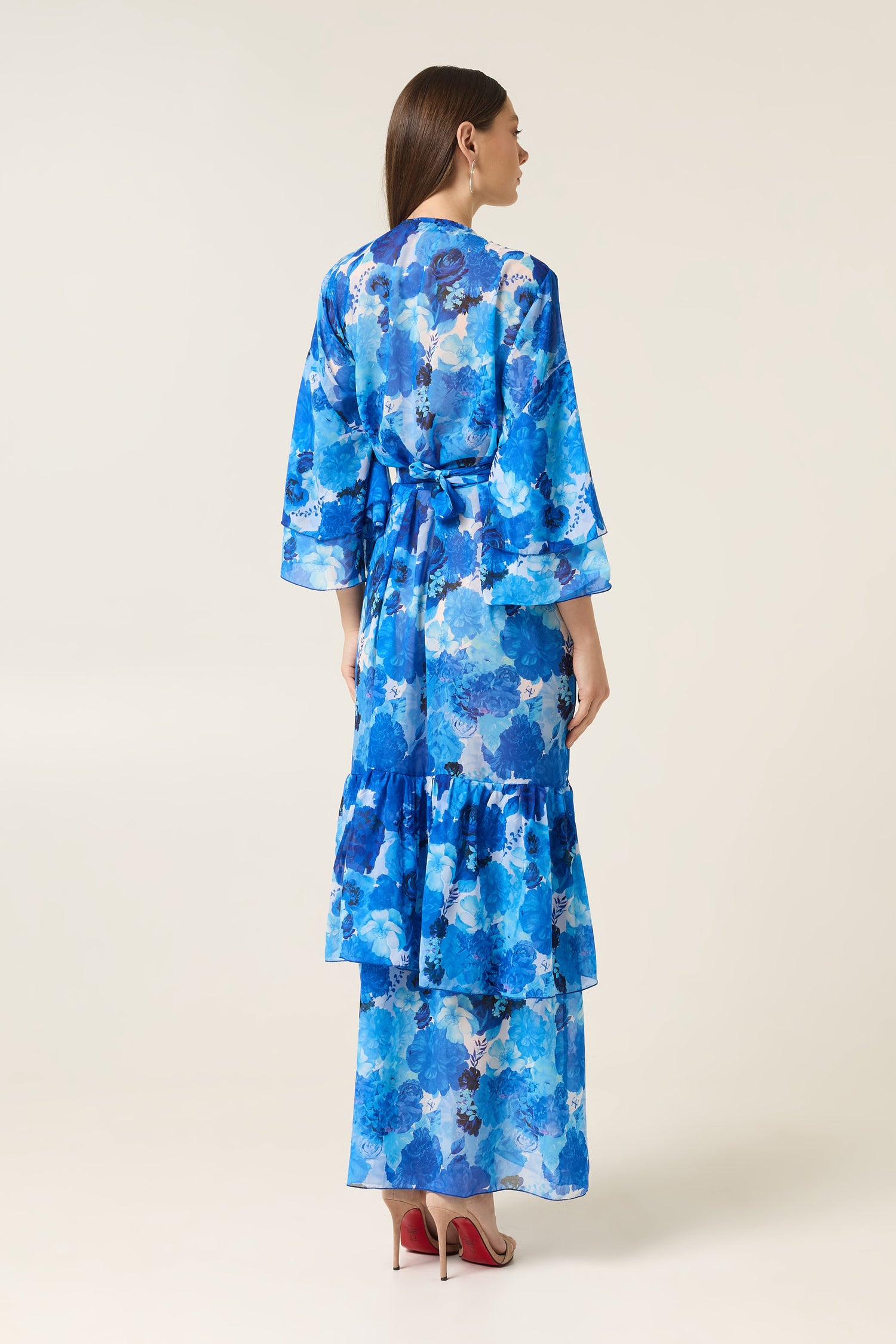 Το print σε αποχρώσεις του μπλε δημιουργεί ένα έντονο αλλά κομψό αποτέλεσμα, ενώ το αέρινο ύφασμα κινείται φυσικά, χαρίζοντας μοναδική αίσθηση ελευθερίας και θηλυκότητας.