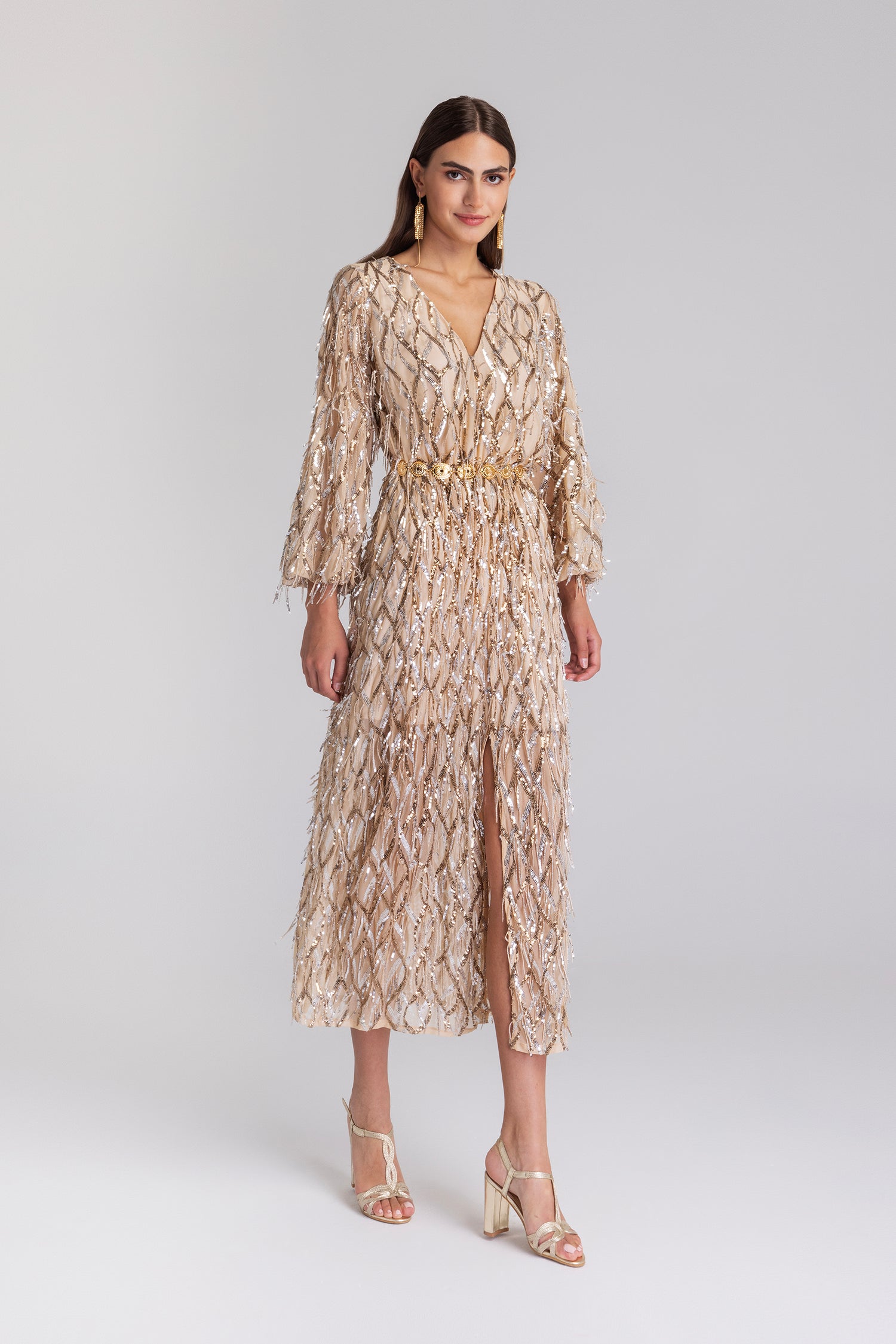 - Εντυπωσιακό all-over κέντημα με παγιέτες σε γεωμετρικό μοτίβο
