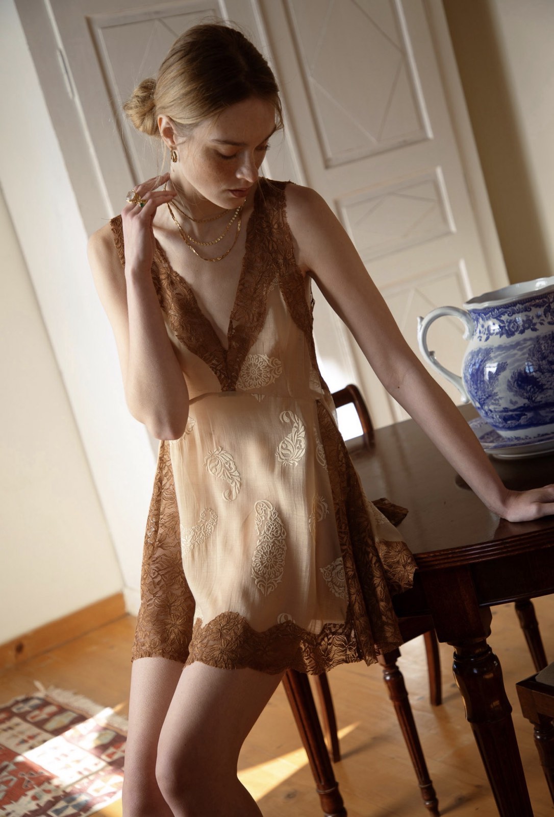 Nidodileda - Between Topdress Embroidered Lace Embellished - Light Yellow/Brown quantity