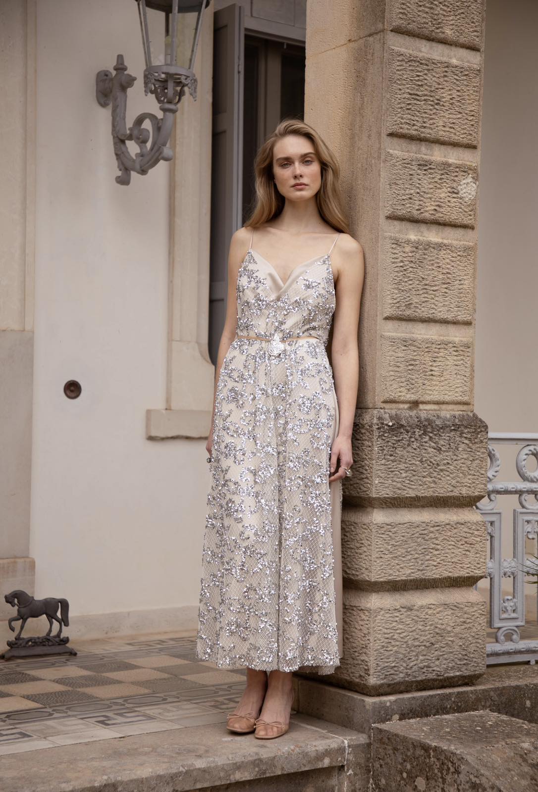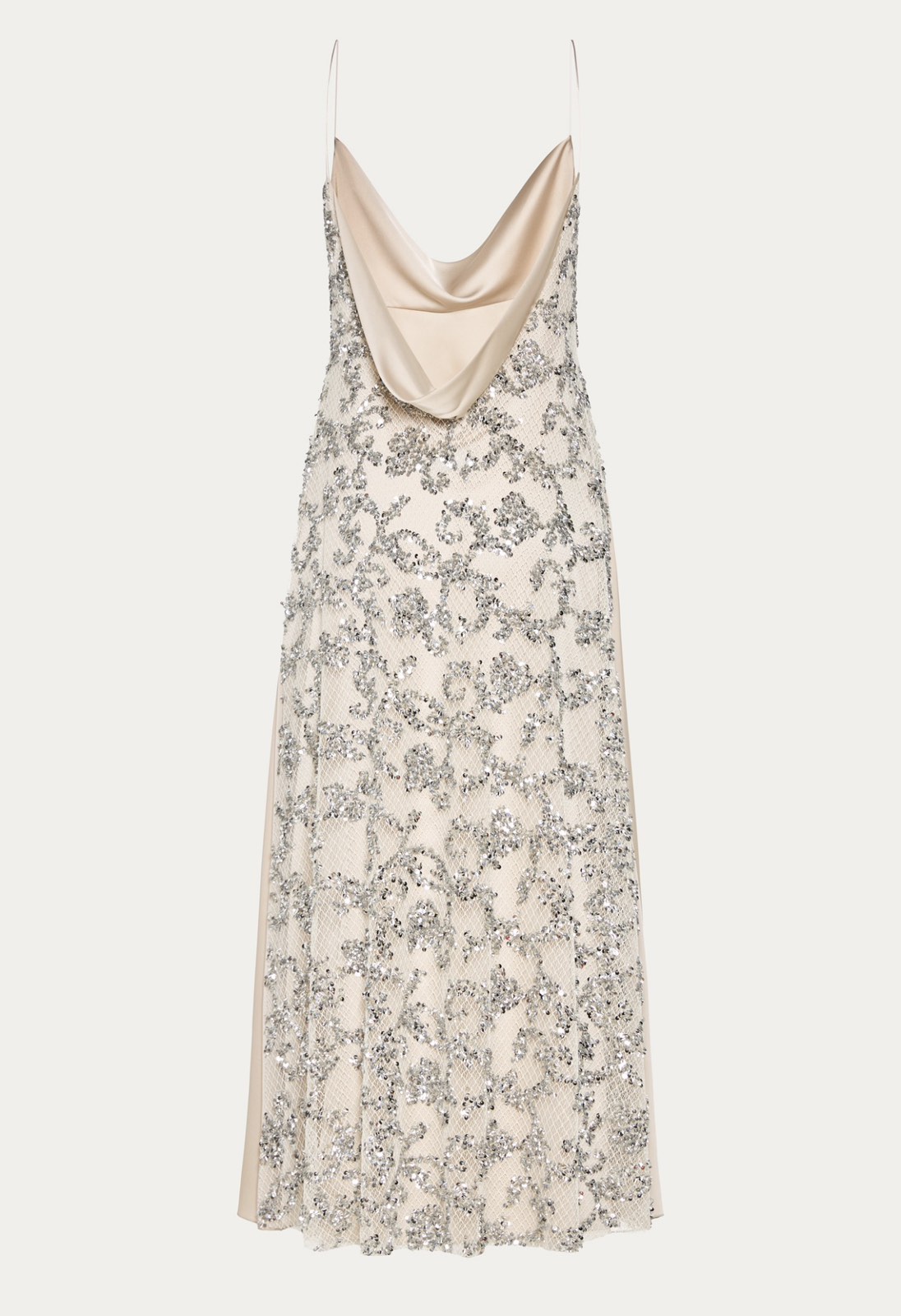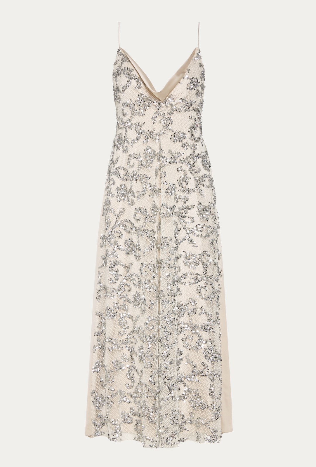 Nidodileda – Elsewhere Dress Sequined Net Over Satin – Silvery Sand