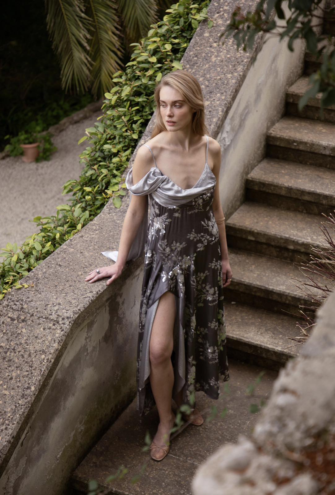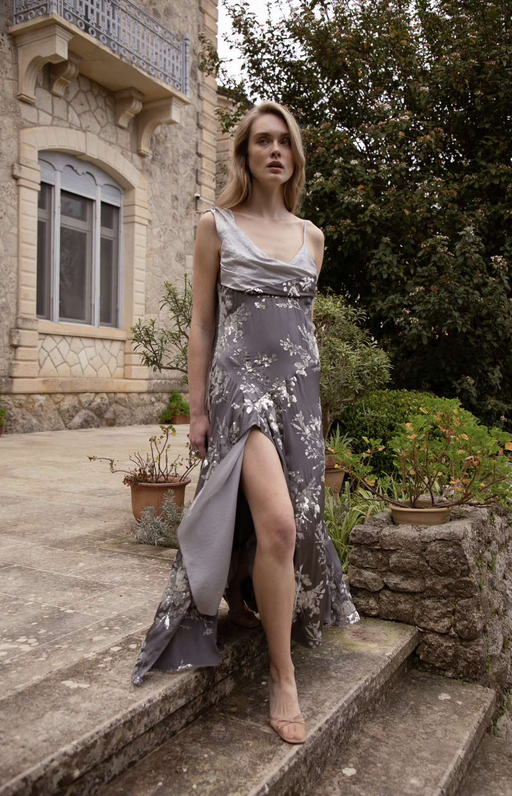 Nidodileda – Endless Dress Sequined Satin Foil – Grey/Silver