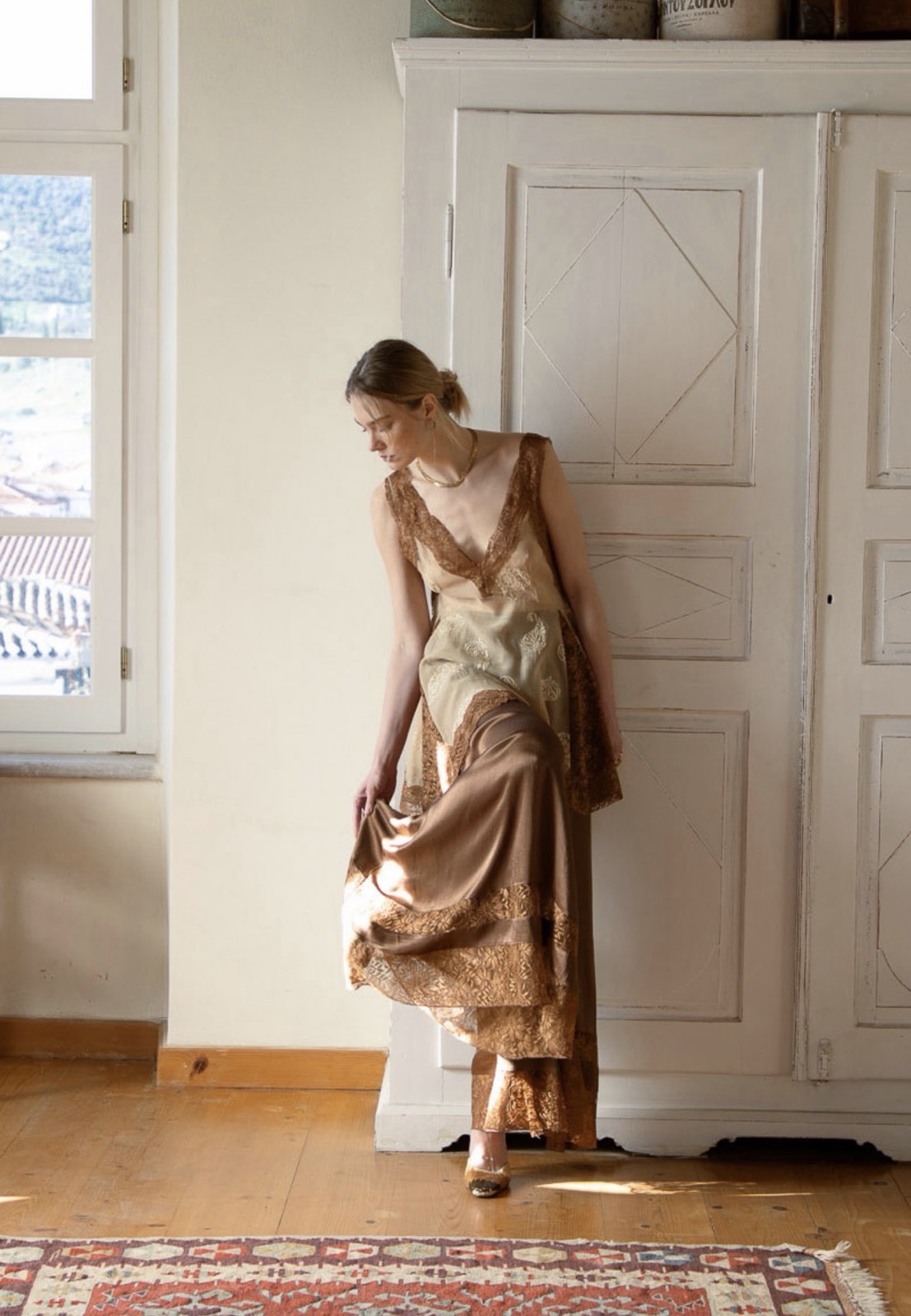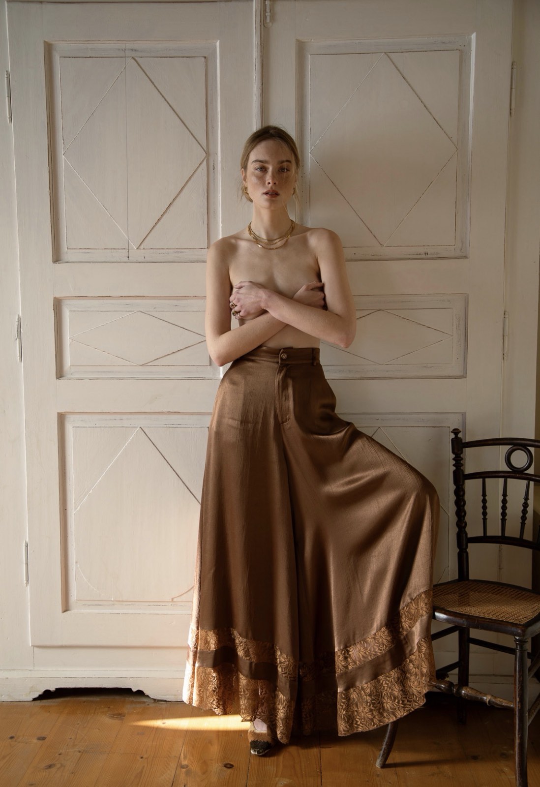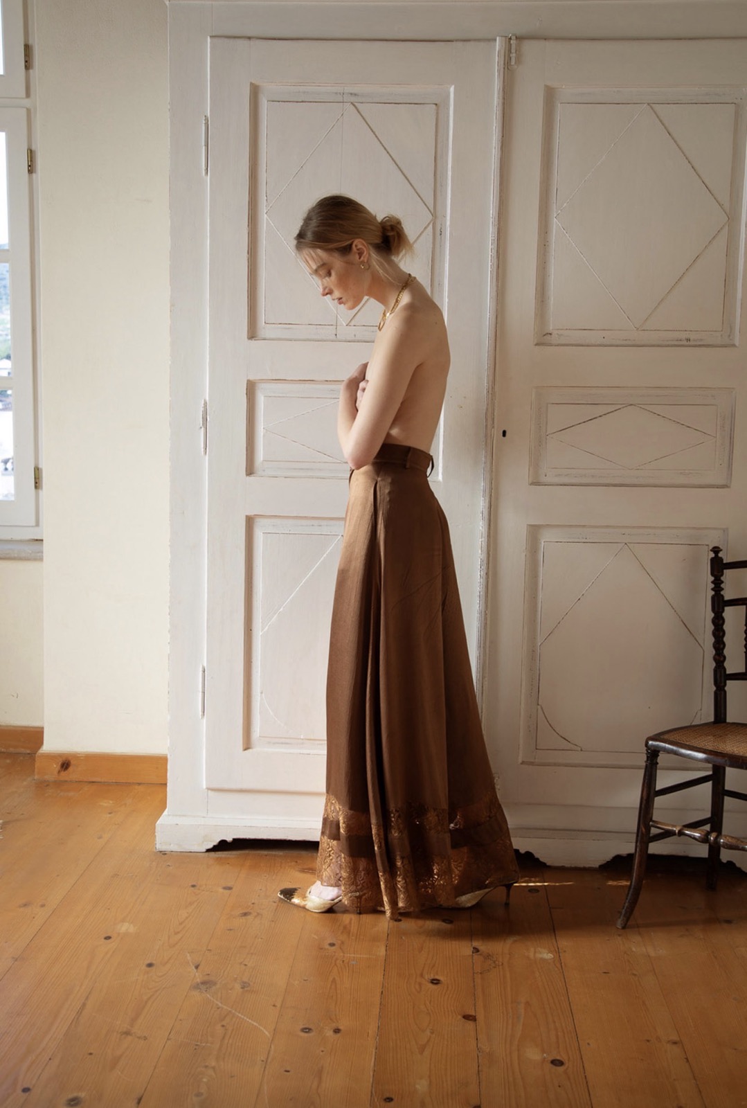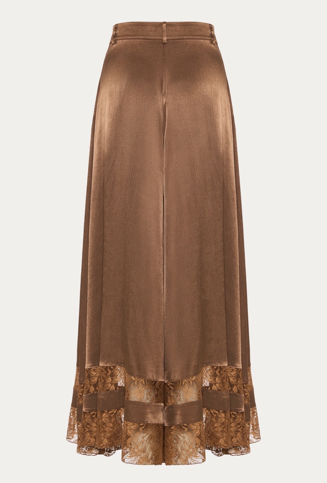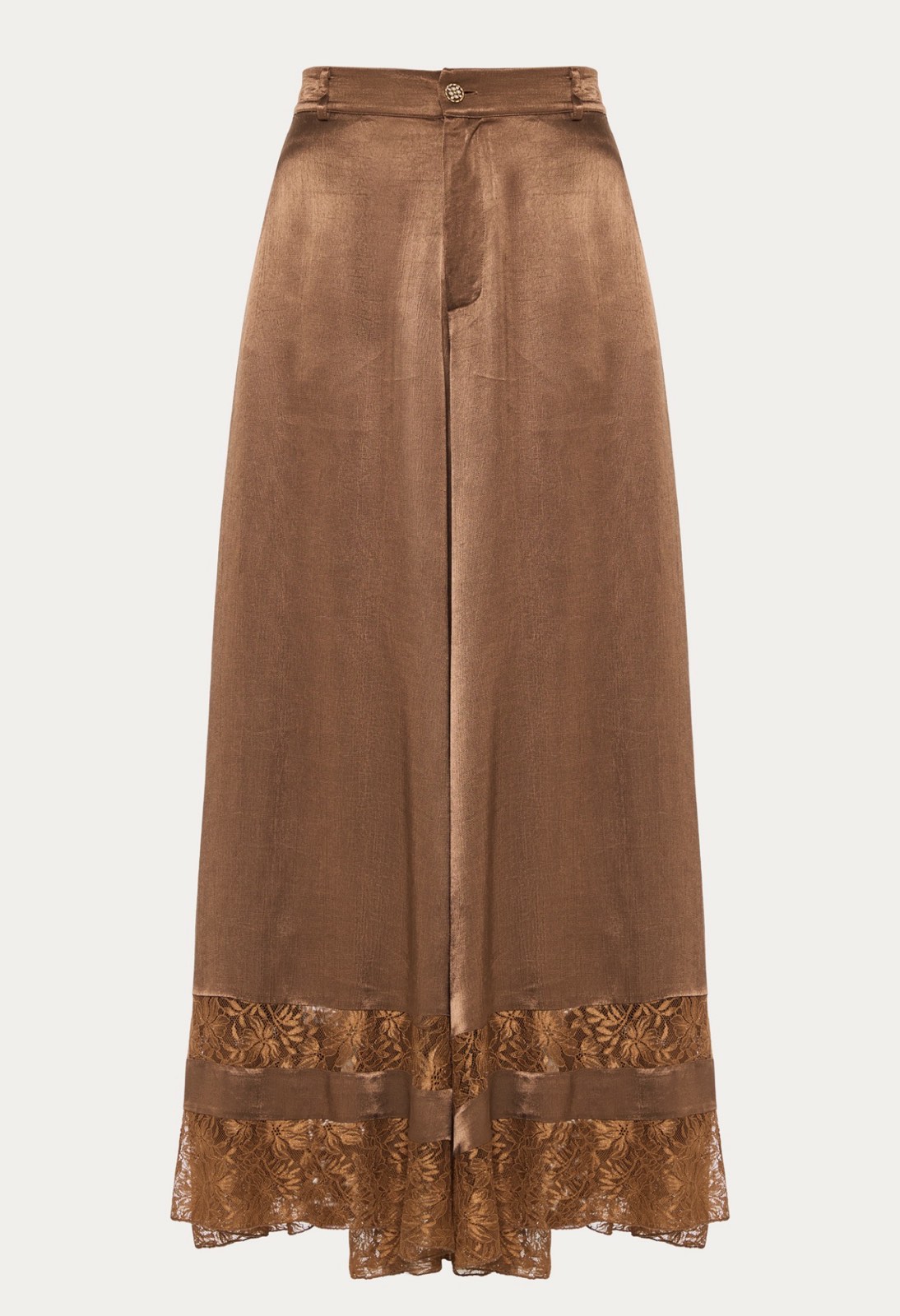 Nidodileda – Scope Pants Satin Lace Embellished – Chocolate